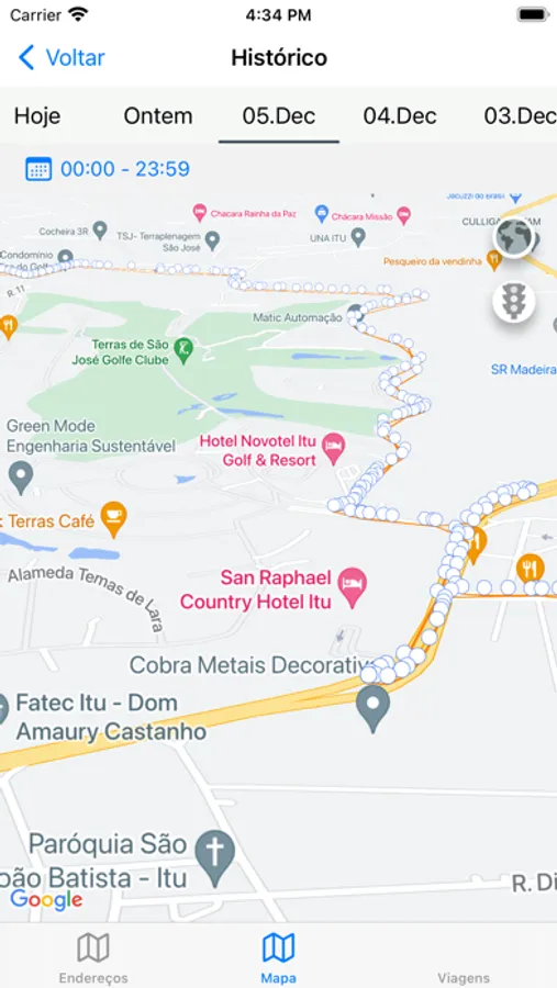 Você também terá acesso ao histórico de telemetrias, para saber a que momento os evento foram acionados.