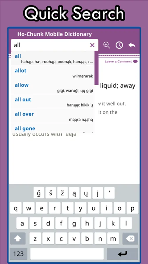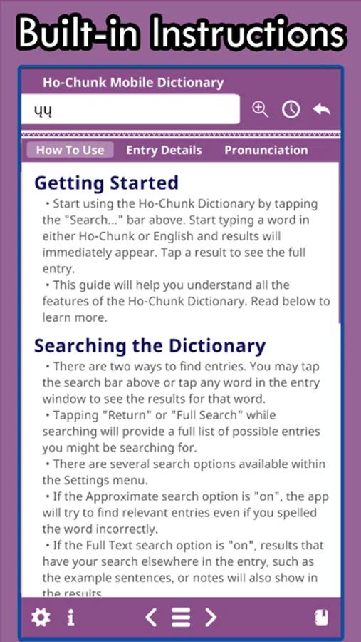 • The Ho-Chunk Mobile Dictionary uses a simple tap and go interface