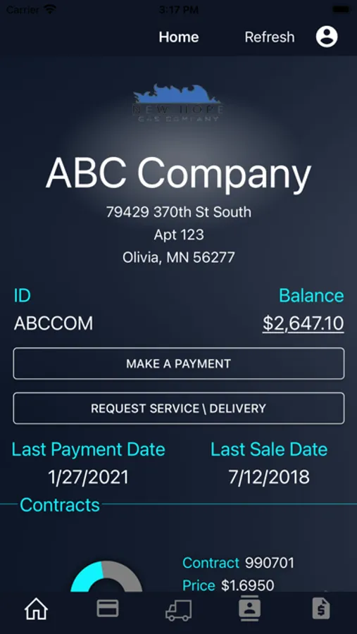Information at your fingertips! This app gives you direct access to your account balance, location and contract information. It also gives you the ability to store and process payment and request service work and deliveries directly through the app.