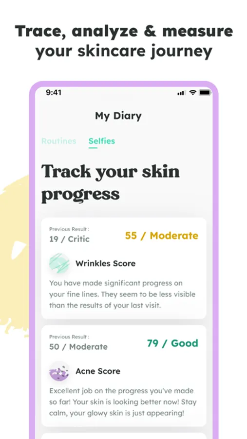 Gain measurable data on your skin health and beauty routine with a fully personalized skin scoring system. Find out what works for your skin and how to take good care of it. With the habit tracker, you can have personalized routines that take you on a journey fulfilled with healthy habits.