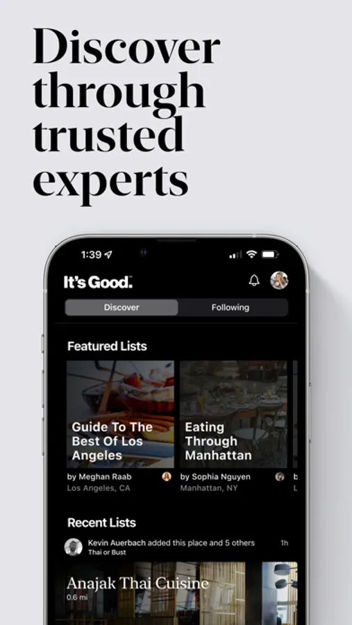 There is no star rating system on It's Good, no score to interpret—places are either Good or not. You curate your community of people you trust, and your community curates the best recommendations. One great recommendation, from someone whose taste you really respect, is far greater than 5,000 recommendations from people you don’t. Trust us, It’s Good.