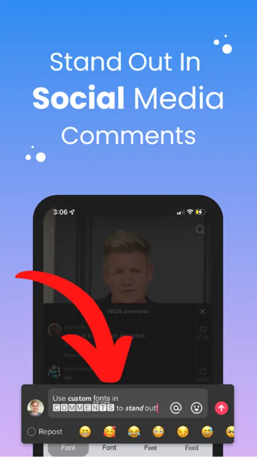 ● Custom Fonts makes easy for you to stand out in a comment section on Instagram, YouTube, TikTok, et cetera (which helps you to achieve one of top comments)