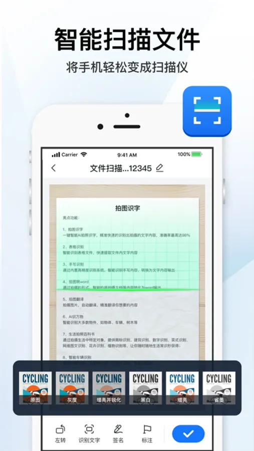 完美替代笨重的扫描仪,一键扫描储存各类证件、试卷、合同、笔记等