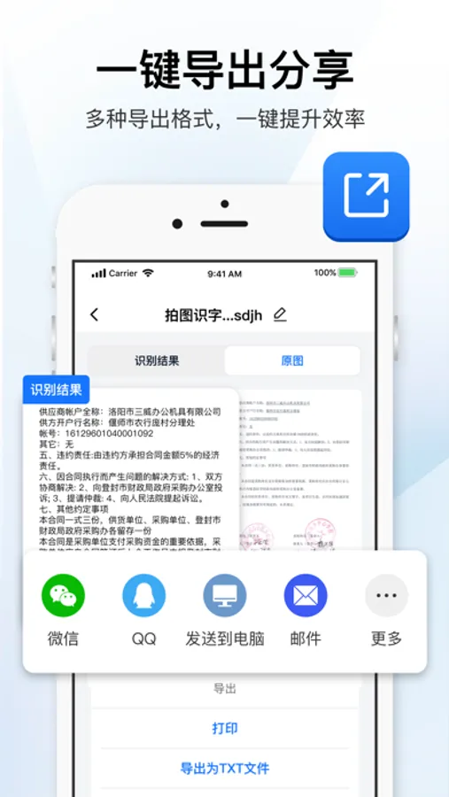 扫描识别的文件内容可轻松一键保存,支持多种格式