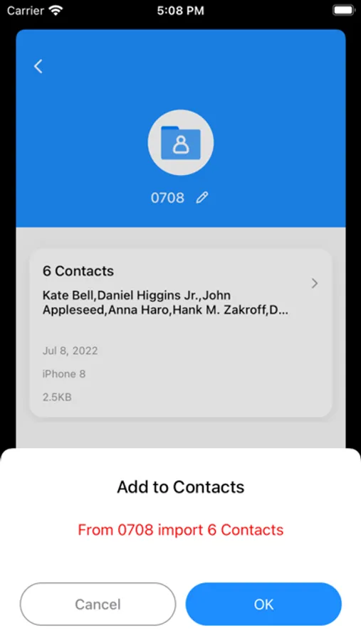 Instantly export your contacts as .vcf files via email or iMessage and simply restore them on any device when you want. All this directly from your iPhone!