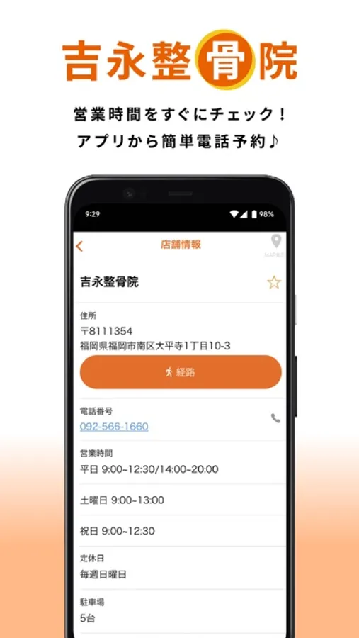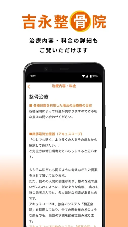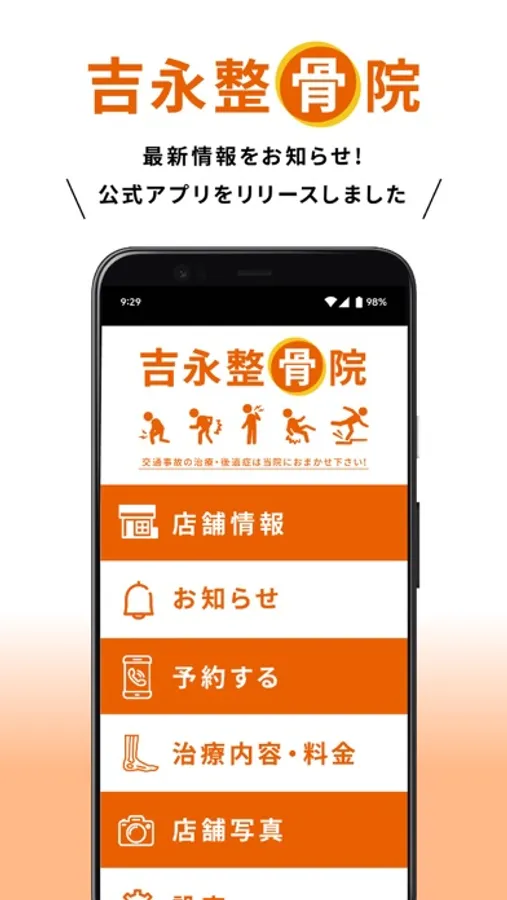 福岡市にある博多区・城南区・南区からアクセス容易の整骨院「吉永整骨院」の公式アプリです。