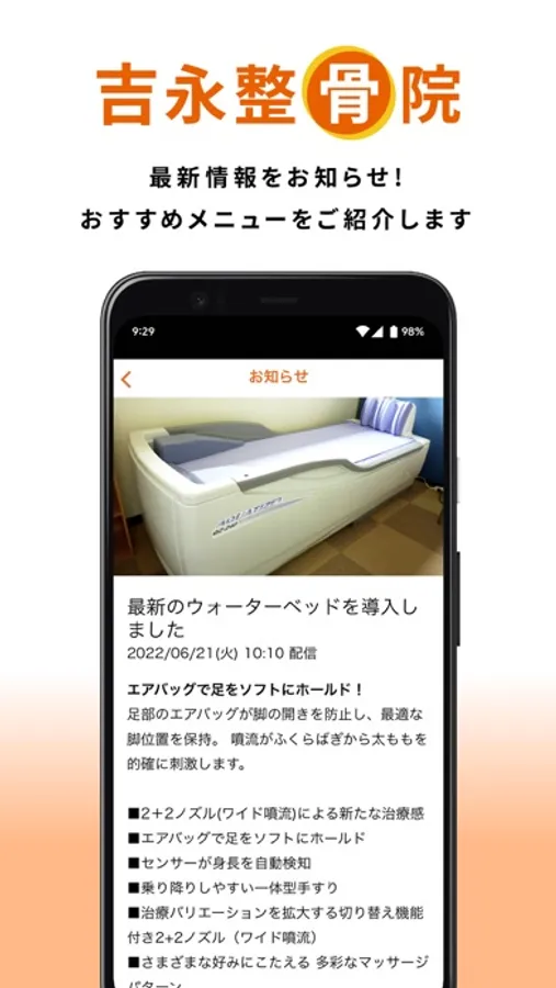吉永整骨院の最新情報やお得なイベントなどのお知らせが届くとプッシュ通知でいち早く確認することができます。