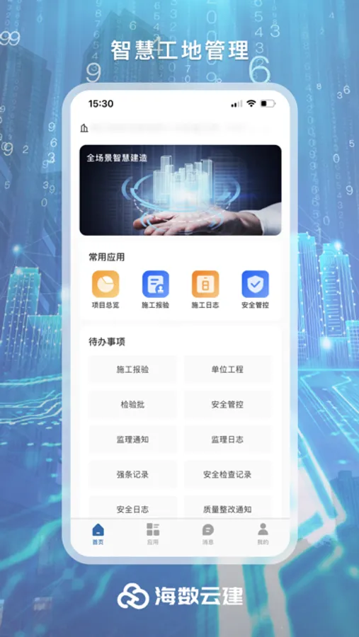 海数云建是一个标准化、多元化、智能化的建造项目管理综合平台。业务端涵盖工程数字化和智慧工地两大板块核心能力,企业可快速接入直接使用。