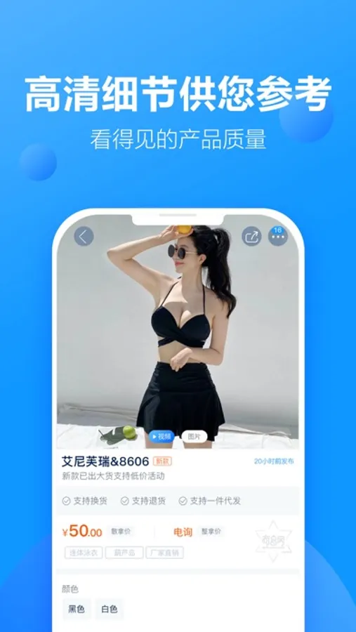 本应用整合中国泳装基地网销供应商货源,提供最新最全的泳装产品信息,支持一件发布到淘宝、拼多多、阿里、跨境电商等平台,并提供一件代发服务。