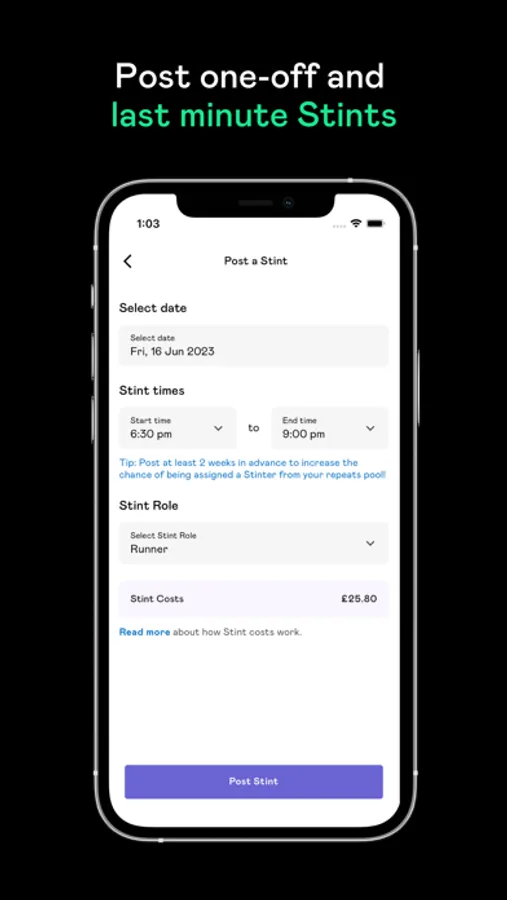 - Stinters work during your busiest periods - for Stints as short as 2 hours.