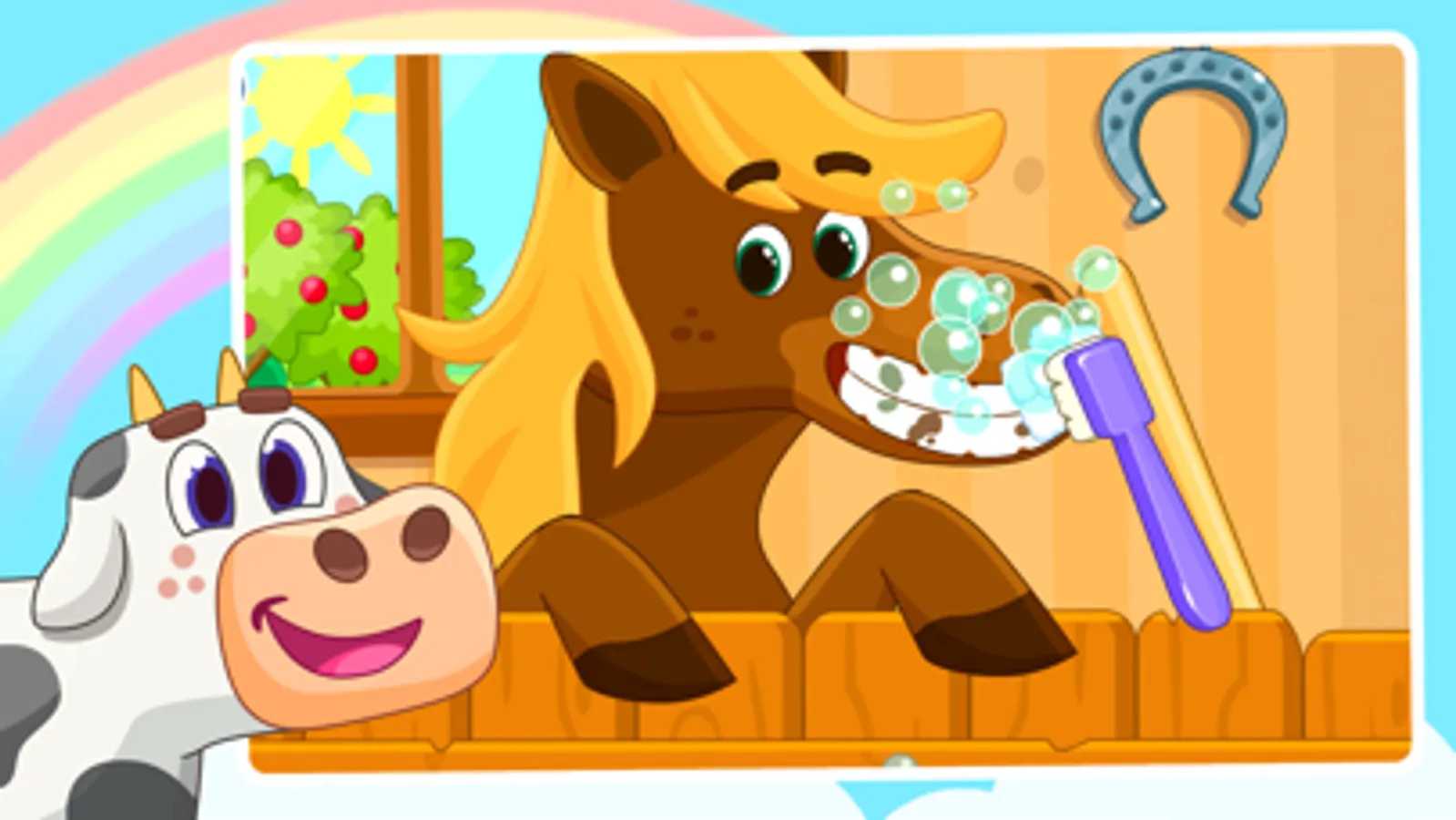 Here you need to take care of domestic animals. You will feed them and help them to bathe to stay clean and happy. A hungry pig, a lamb, a cow, chickens, a horse and even fish are waiting for you.