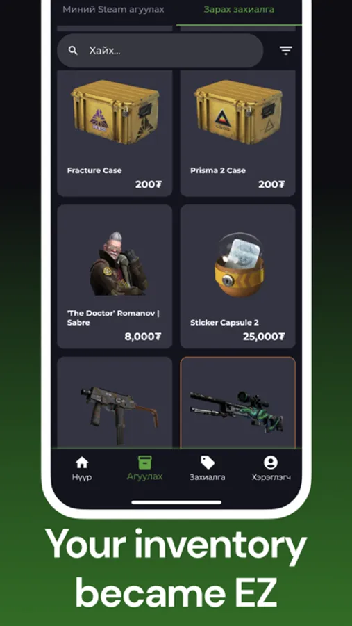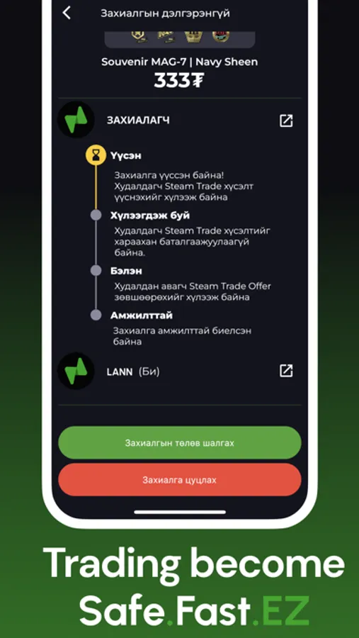 Gamer, Streamer, ESport тамирчид гээд шинэ үеийн залууст тулгардаг гол асуудал бол өөрсдийн тоглоомын ITEM буюу виртуал зүйлсээ аюулгүй бусдад зарах эсвэл бусдаас худалдан авах байсан. Тэгвэл яг одооноос та манай системийг ашиглан ХУРДАН мөн АЮУЛГҮЙ байдлаар маш ХЯЛБАР үйлдлүүдээр өөрийн тоглоом доторх ITEM уудаа бусдад зарах, эсвэл хайртай ITEM аа өөрийн цуглуулгадаа нэмэх боломжтой болж байгаа юм. Өөрөөр хэлбэл хормын төдийд таны ITEM дансанд тань төгрөг болон орох аюулгүй, цогц шийдлийг манай систем олгох юм.