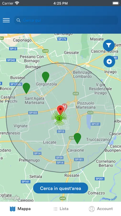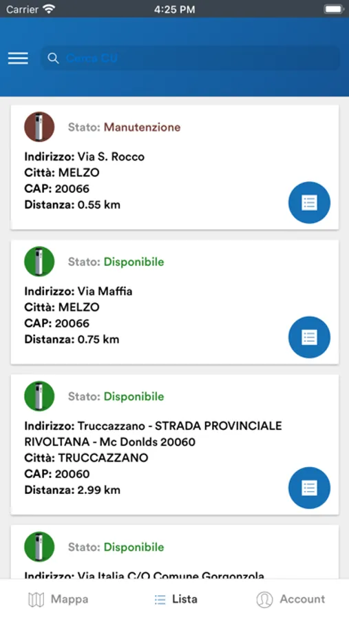 - mostrare un elenco di colonnine in ordine di distanza rispetto alla propria posizione