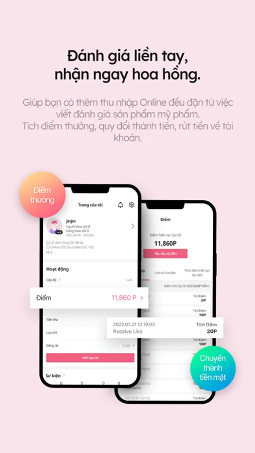 - Bạn hãy thu thập ngay thật nhiều điểm cho mình bằng cách hoạt động thật năng suất trên ứng dụng, bạn sẽ được nhận ngay hoa hồng là tiền mặt cực hấp dẫn.