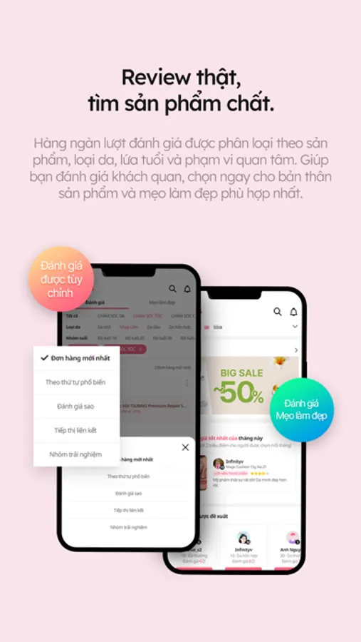 - Hơn thế nữa, bạn cũng có thể tham khảo các đánh giá từ những người dùng có cùng loại da, nhóm tuổi và danh mục yêu thích với bạn đó.