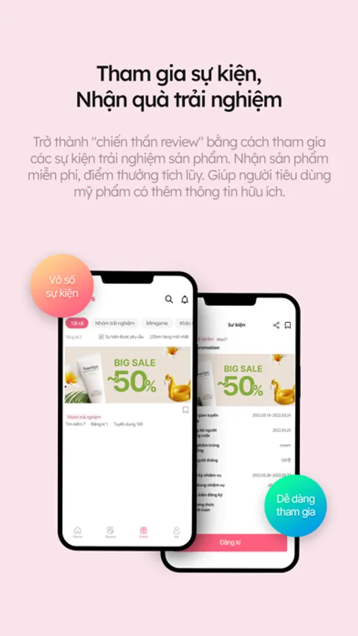 - Hãy tham gia các sự kiện này và trở thành người có sức ảnh hưởng để đánh giá sản phẩm.