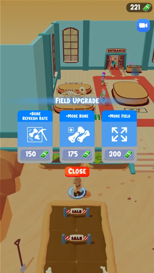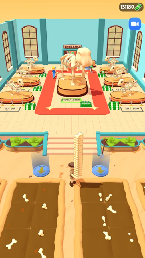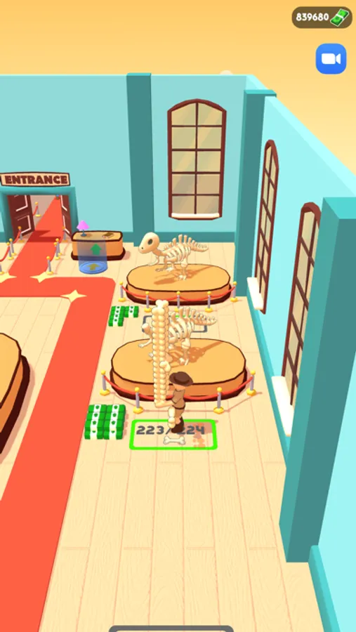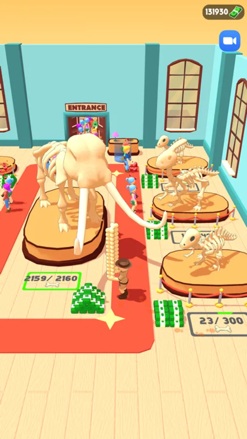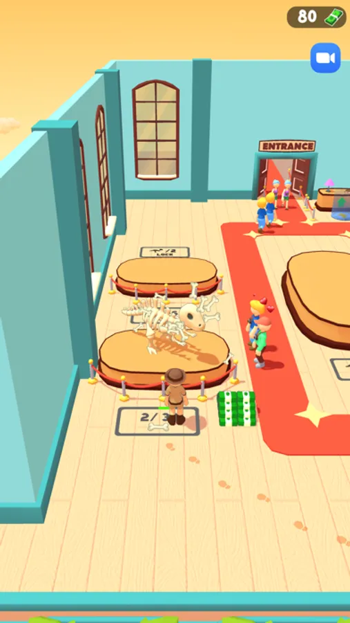 Collect bones to open new dinosur skeletons to gain more and develop your museum more!
