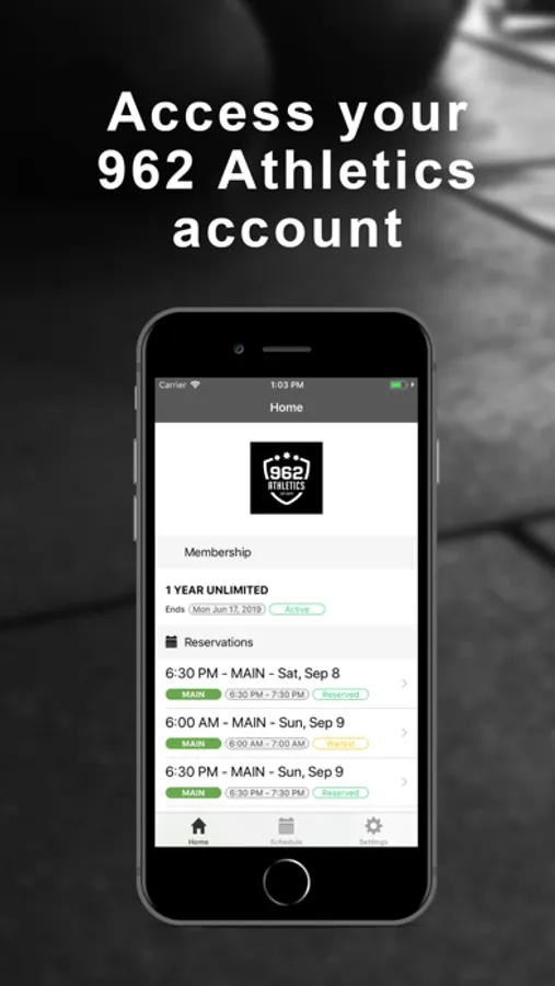 This iPhone app allows members of 962 Athletics to access class schedules and manage their class reservations.