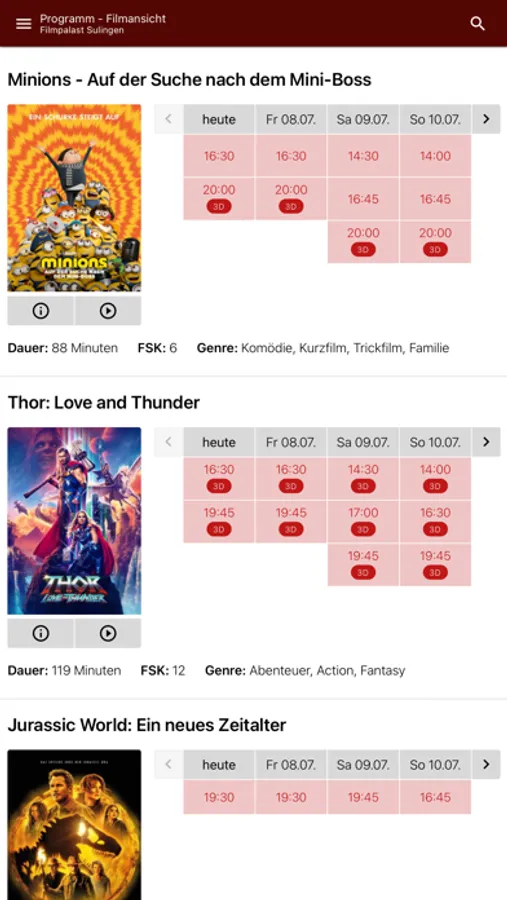 Hier kaufst Du in unter einer Minute Kinotickets für Deinen Lieblingsfilm. Schnell, sicher, einfach und ohne Anstehen an der Kinokasse. Einfach aus dem aktuellen Kinoprogramm Deinen Film buchen und Du erhältst die Tickets einfach & bequem als E-Ticket auf Dein Smartphone und an Deine E-Mail-Adresse.