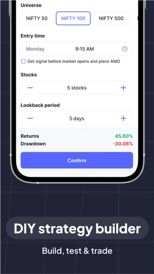 Systematic trading is now made easy with Quant Signals. Customize your stock market investments with DIY Trading Strategies. Build, test, and execute your unique trading strategies all within the Investmint app. These tradable alerts provide easy-to-follow entry and exit signals, which are based on proven stock market trading strategies like mean reversion, momentum, trend, and volatility.