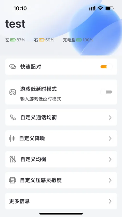 一款智能蓝牙耳机app,支持自定义通话均衡,自定义降噪、OTA升级等功能,更多信息等。