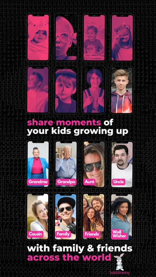 100% FREE & PRIVATE: Hushbunny is built to deliver a safe experience of capturing everyday moments of your kids growing up
