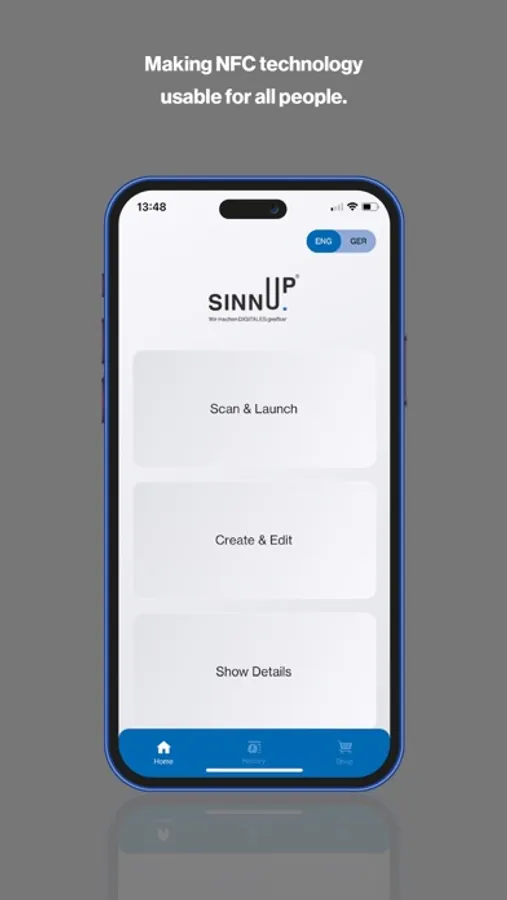 SINNUP is an NFC expert from the very beginning, which is one of the reasons why we now also offer this practical app. With it, you can easily program NFC tags or even design QR codes. There are a number of features available, including: