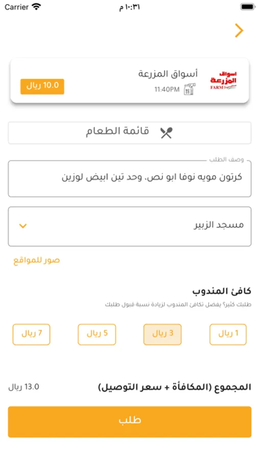 بتطبيق مار بتلقى أرخص سعر توصيل يبدأ من 5 ريال مع نفس أسعار قوائم المطاعم والمقاهي