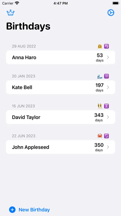 Never miss a birthday again with Birthday Reminder, a simple and elegant app that helps you keep track and view a countdown of upcoming birthdays.