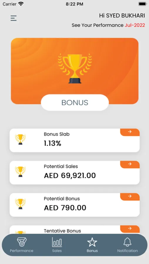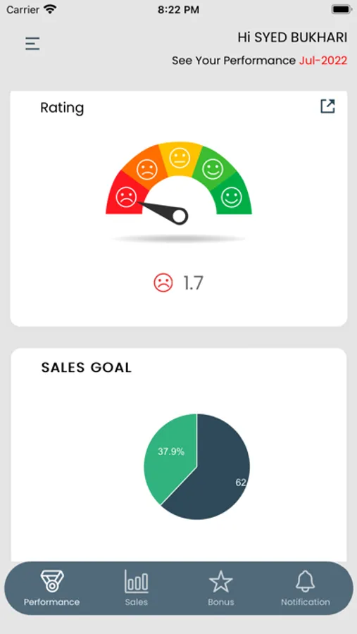 The Sedar Central App is intended to assist the company's sales team and individual salespeople in keeping track of their sales numbers and meeting sales goals. It displays individual performance in real time as well as the option to view previous months.