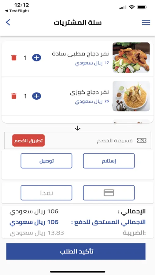 Raydan online Food ordering application (Home Delivery or Pickup from the Branch or Future Orders)