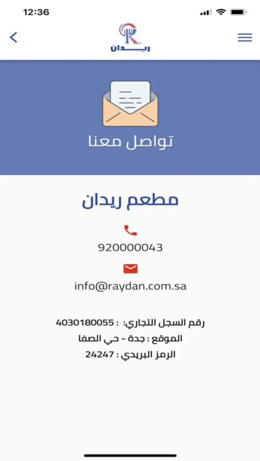 You can also pick up the orders from the branch, just order from the application and select any Raydan Restaurant branch of your choice then just arrive at that branch to pick up your order.