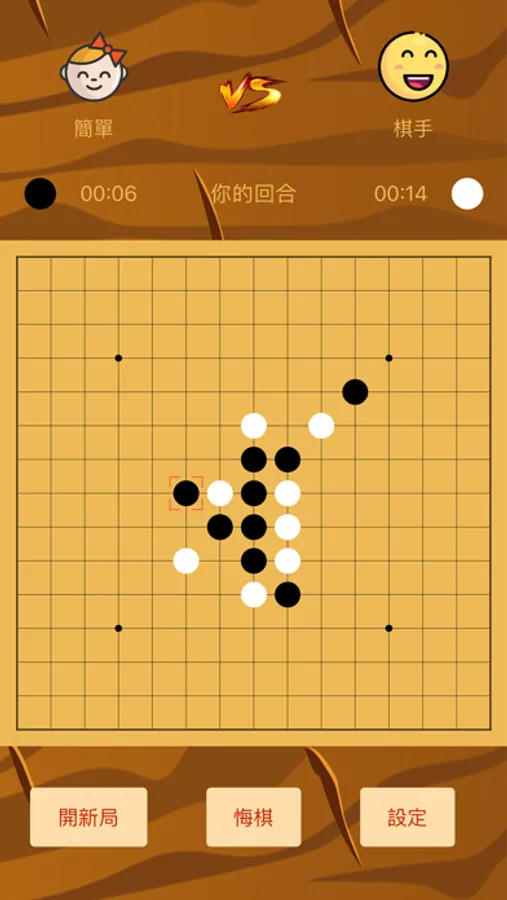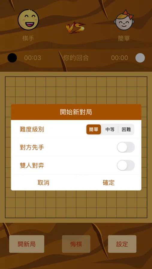 1、「人機對戰」在開局時選擇難度級別,支持簡單、中等、困難三種難度級別。困難級別的電腦思考時間久,所以是相當的難哦~人機模式支持先手選擇,選擇玩家或是對方執黑先行。