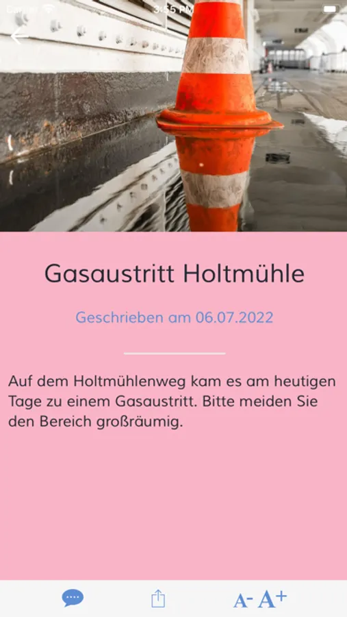 Registrieren Sie sich kostenlos und auf jederzeitigen Widerruf, um sogar sogenannte "georeferenzierte Push-Mitteilungen" zu erhalten. Sie befinden sich zum Beispiel in der Nähe eines Gasautrittes? Oder in Ihrem Ortsteil ist der Notruf kurzfristig ausgefallen? Dann erhalten Sie für Ihren Standort konkrete Infos über die aktuellen Geschehnisse.