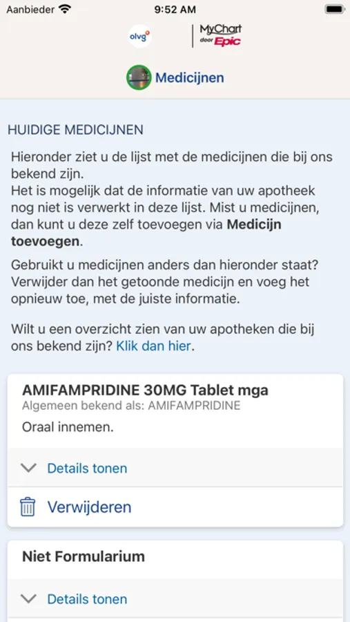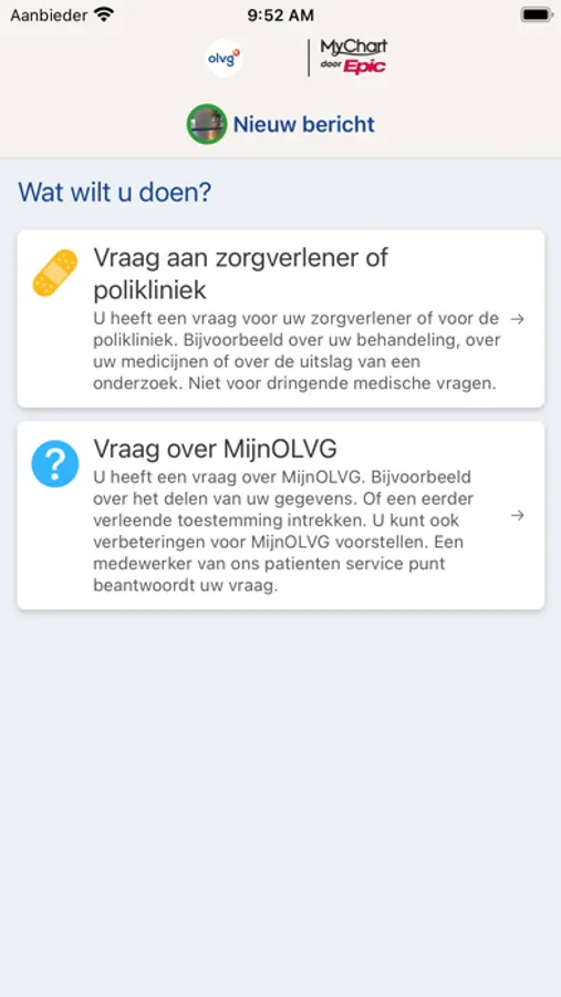 Met MijnOLVG heeft u als patiënt van OLVG altijd toegang tot uw medisch dossier. U maakt of wijzigt afspraken, bekijkt uitslagen van onderzoeken of stuurt een bericht aan de afdeling waar u onder behandeling bent. MijnOLVG geeft u inzicht in uw gezondheid en helpt u bij het voorbereiden van uw afspraken en het gesprek met uw zorgverlener. Ook kunt u ervoor zorgen dat andere zorgverleners uw dossier in kunnen zien, bijvoorbeeld uw huisarts.