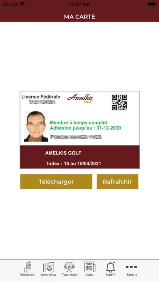 'LOGI GOLF - AMELKIS' est une application qui permet aux membres de réserver à distance un Tee-Time.