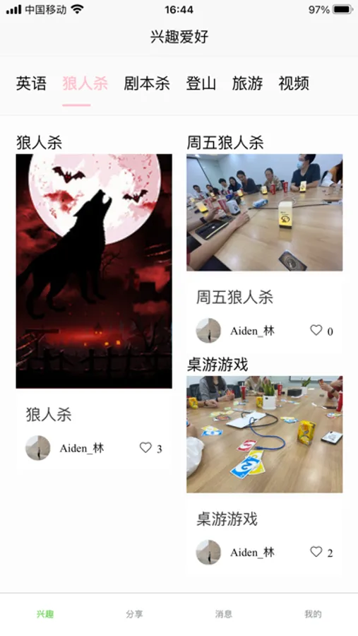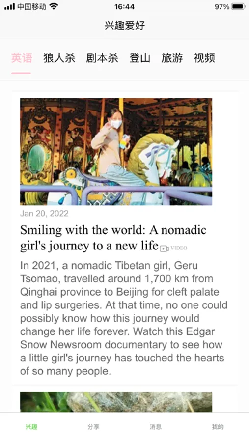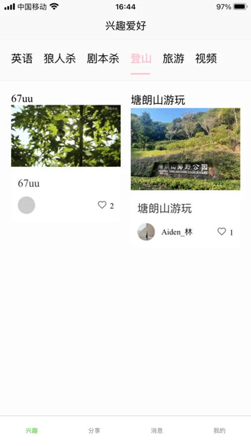 蔓草兴趣是一款兴趣爱好分享应用;主要功能为发布兴趣爱好分享,英语学习,聊天等。