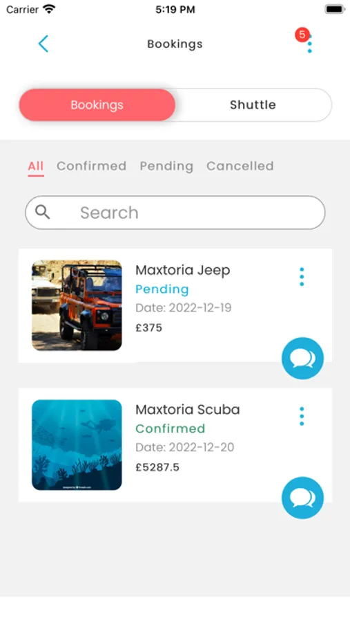 • Get same-day notifications to your activity with directions to your departure and pick up points