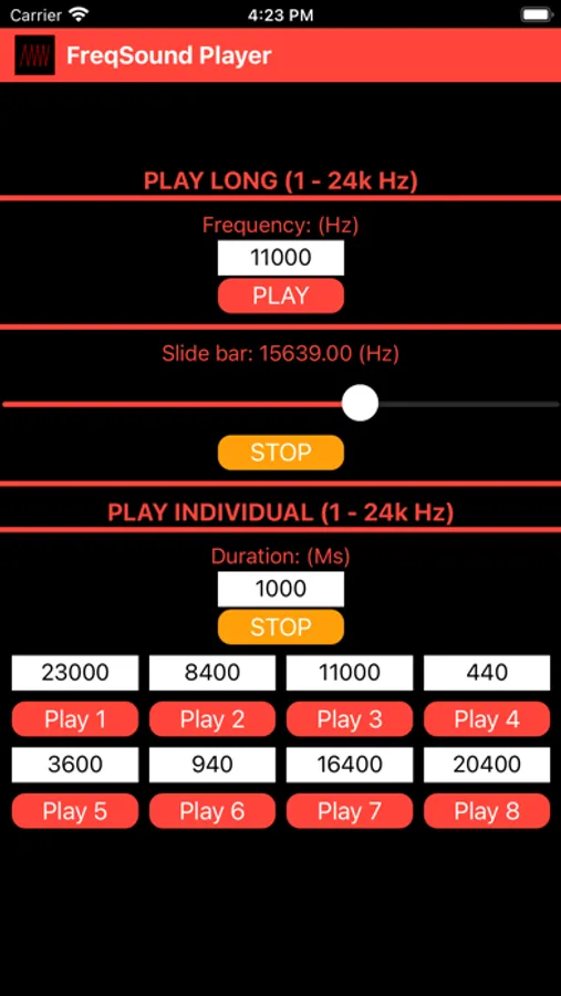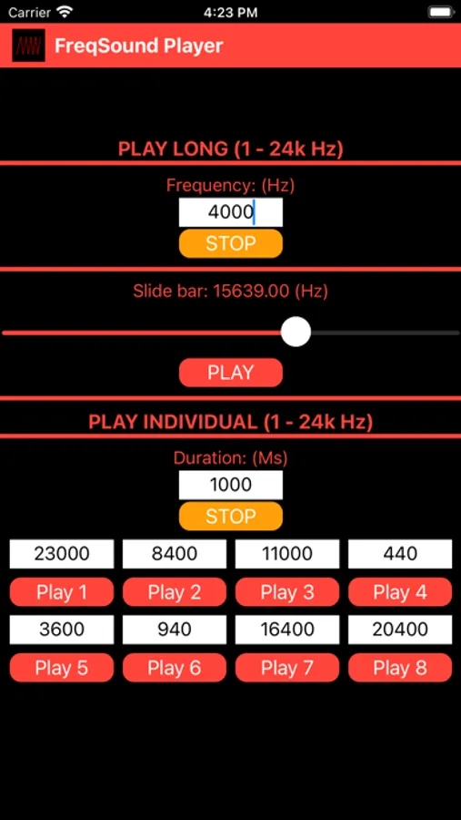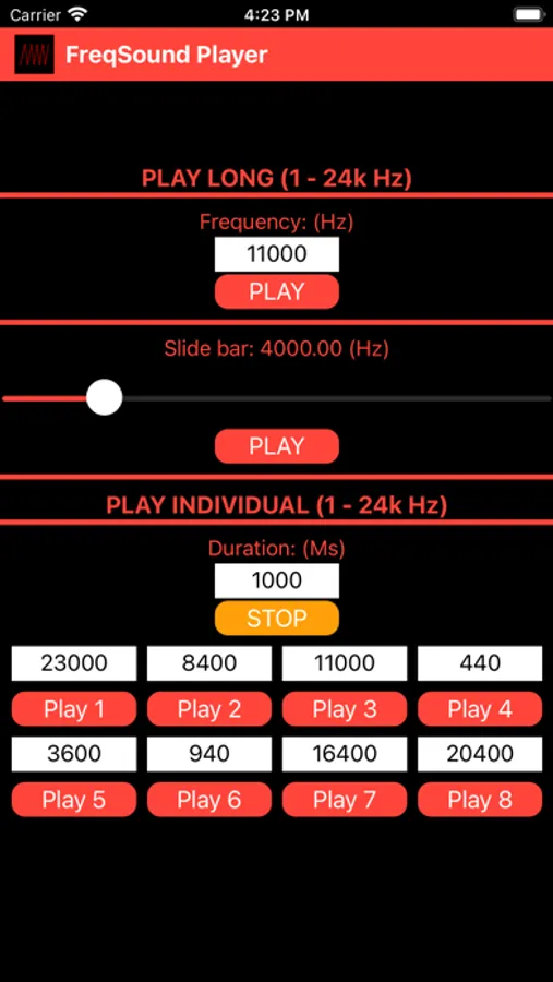 - Slide Bar for adjusting the particular frecuency / pitch sample that you want to play.