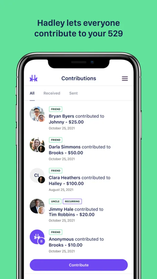 Hadley makes it super easy for anyone to send money straight to your 529 account. Link your 529 to Hadley in just seconds. Hadley works with all 529 plans.