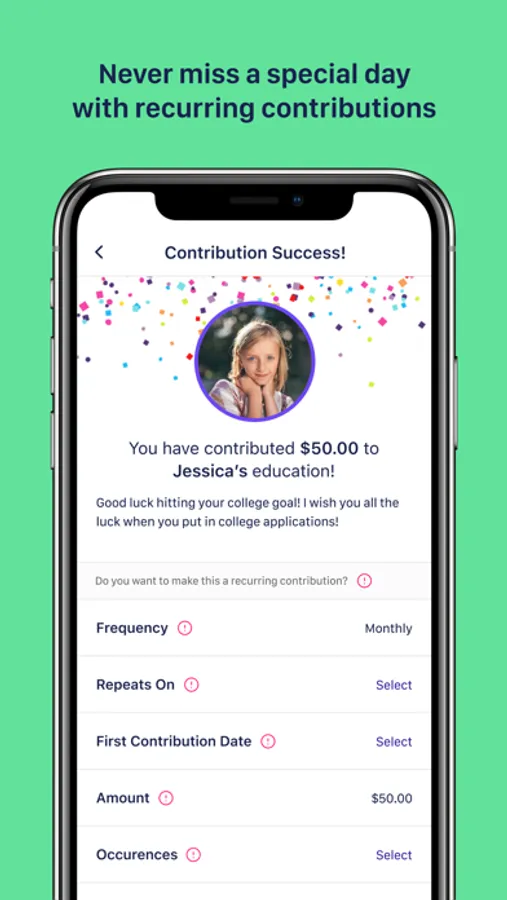 Never miss a special day with recurring contributions.