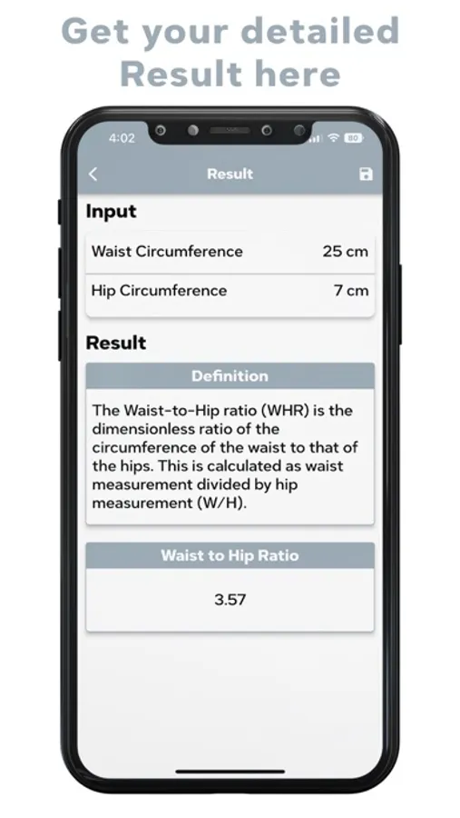 It is a very useful and simple app for men and women to know the ratio between their waist and hips. You only need to enter the circumferences of your waist and hip. This app quickly measures and shows the results.