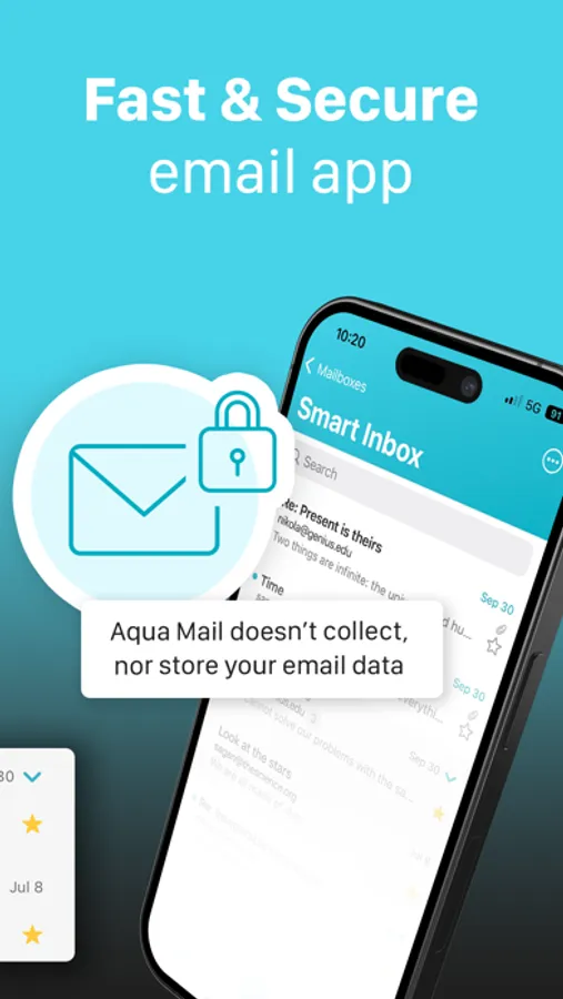 Security and Privacy are our core values. Aqua Mail does not collect and store your passwords, emails, or private message content.