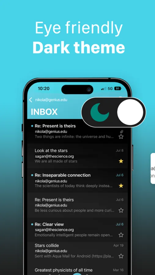 Manage your entire email communication: Gmail, Yahoo, Hotmail, iCloud, Outlook, or Exchange. Aqua Mail supports most of the major email providers and any other IMAP or POP3-enabled email account.