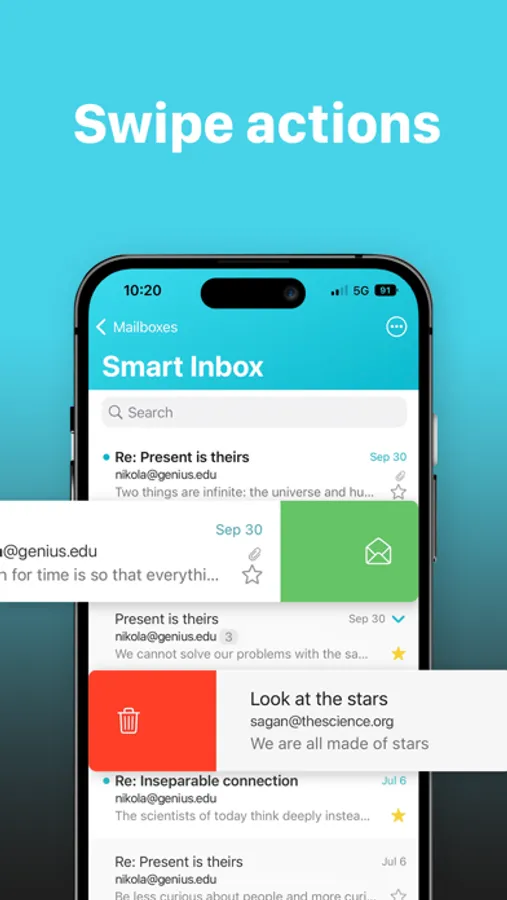 Sync all of your email inboxes from different providers in one unified Smart inbox.