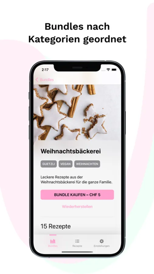 Endlich gelingsicher vegan Backen! Die Rezepte App der Schweizer Bloggerin Vanillacrunnch machts möglich. Verschiedene Bundles (Weihnachtsbäckerei, Backen ohne Gluten, Zuckerfrei etc.) geben die Möglichkeit individuell Rezepte in nach Themen herunterzuladen.