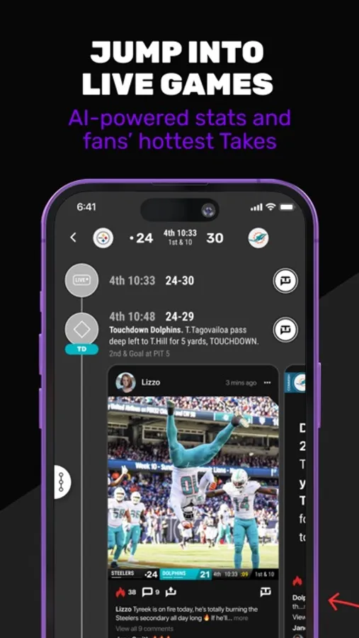 - Access a universe of sports history: summon the AI-powered Commish with the Takes button to add stats and fact-check friends’ commentary