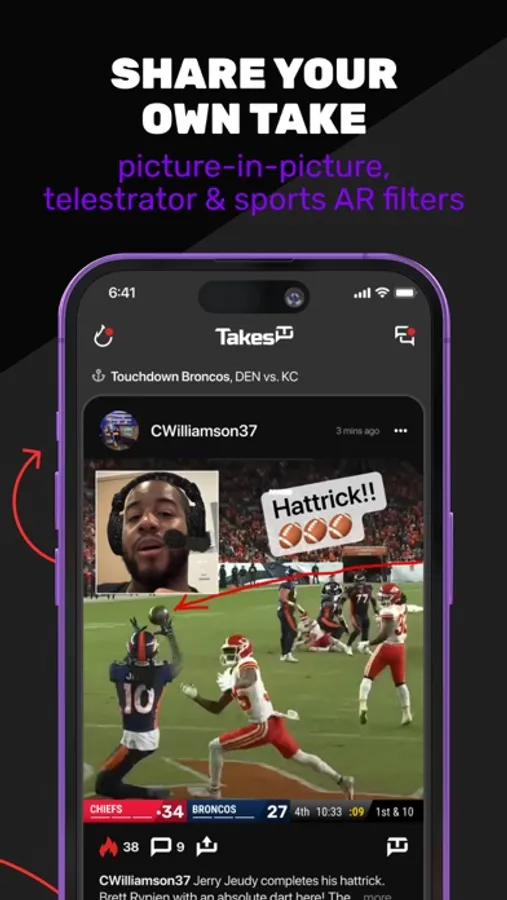 - Be a pro commentator: use sportscaster-quality tools such as picture-in-picture, telestrator and AR filters to add sizzle to your Take