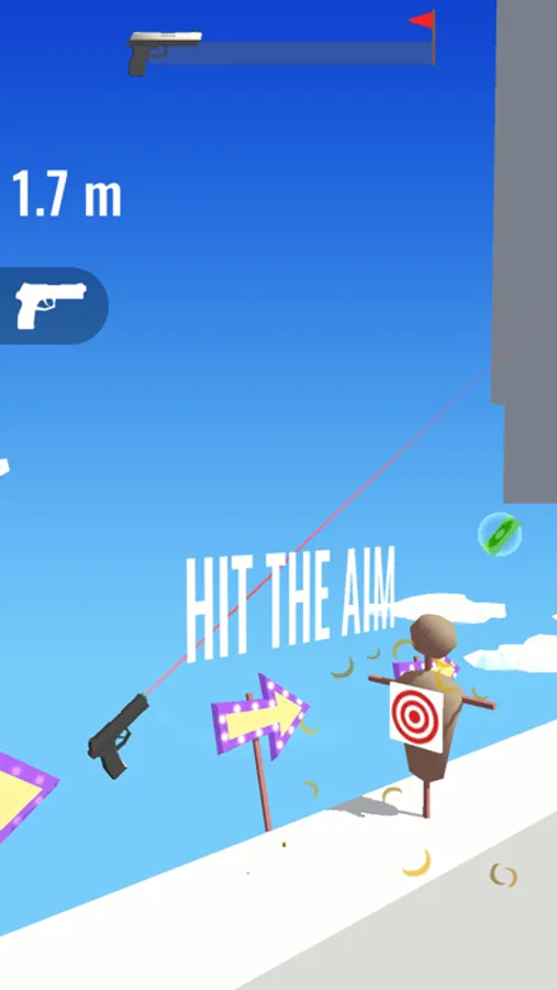Shoot the objects you meet on your way and collect money. You can buy other cool weapons with this money. Make a critical shot, destroy the obstacles, and don't forget to aim.