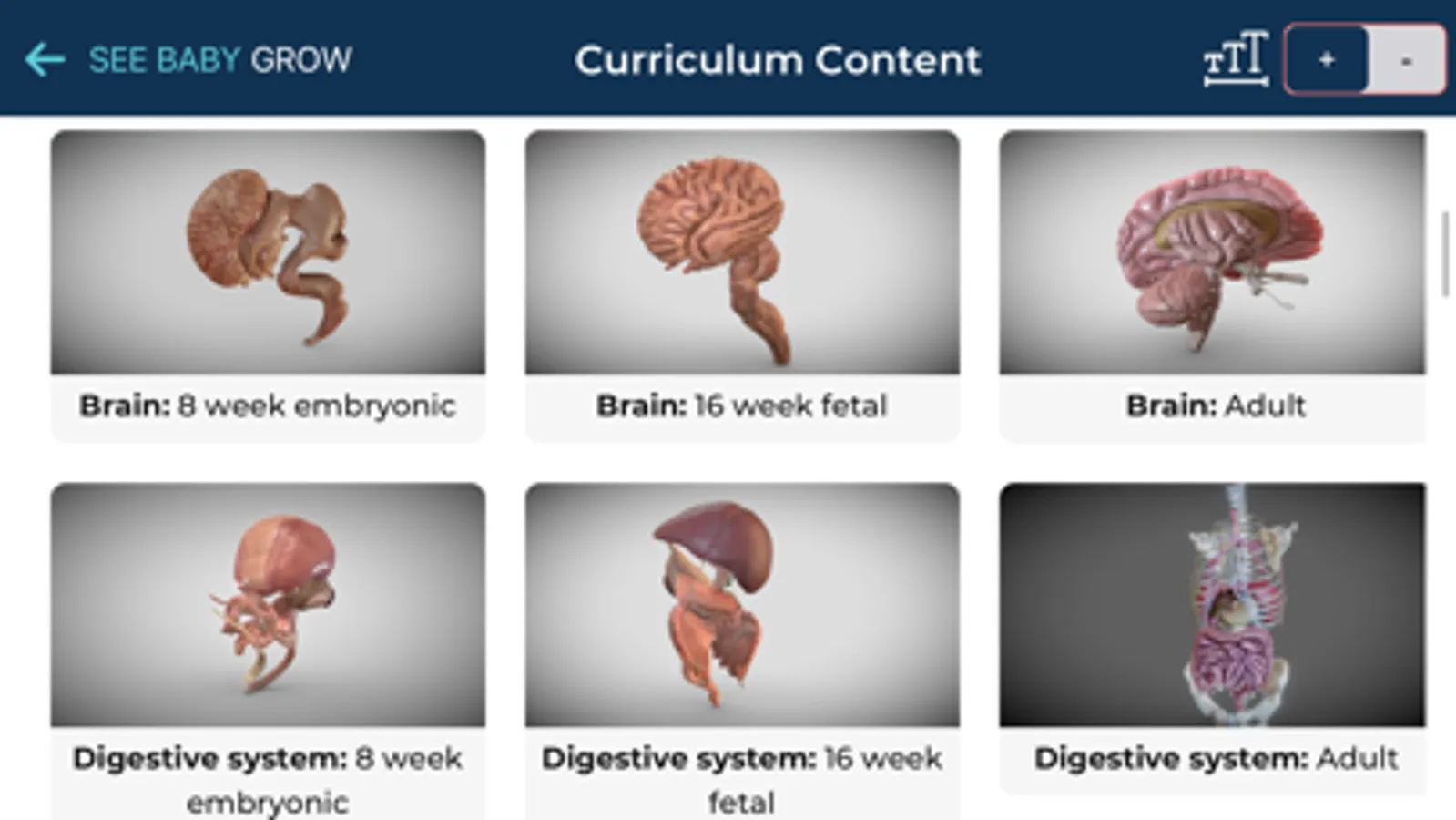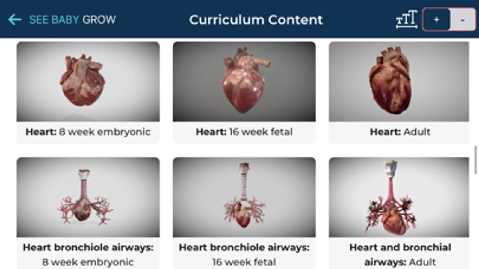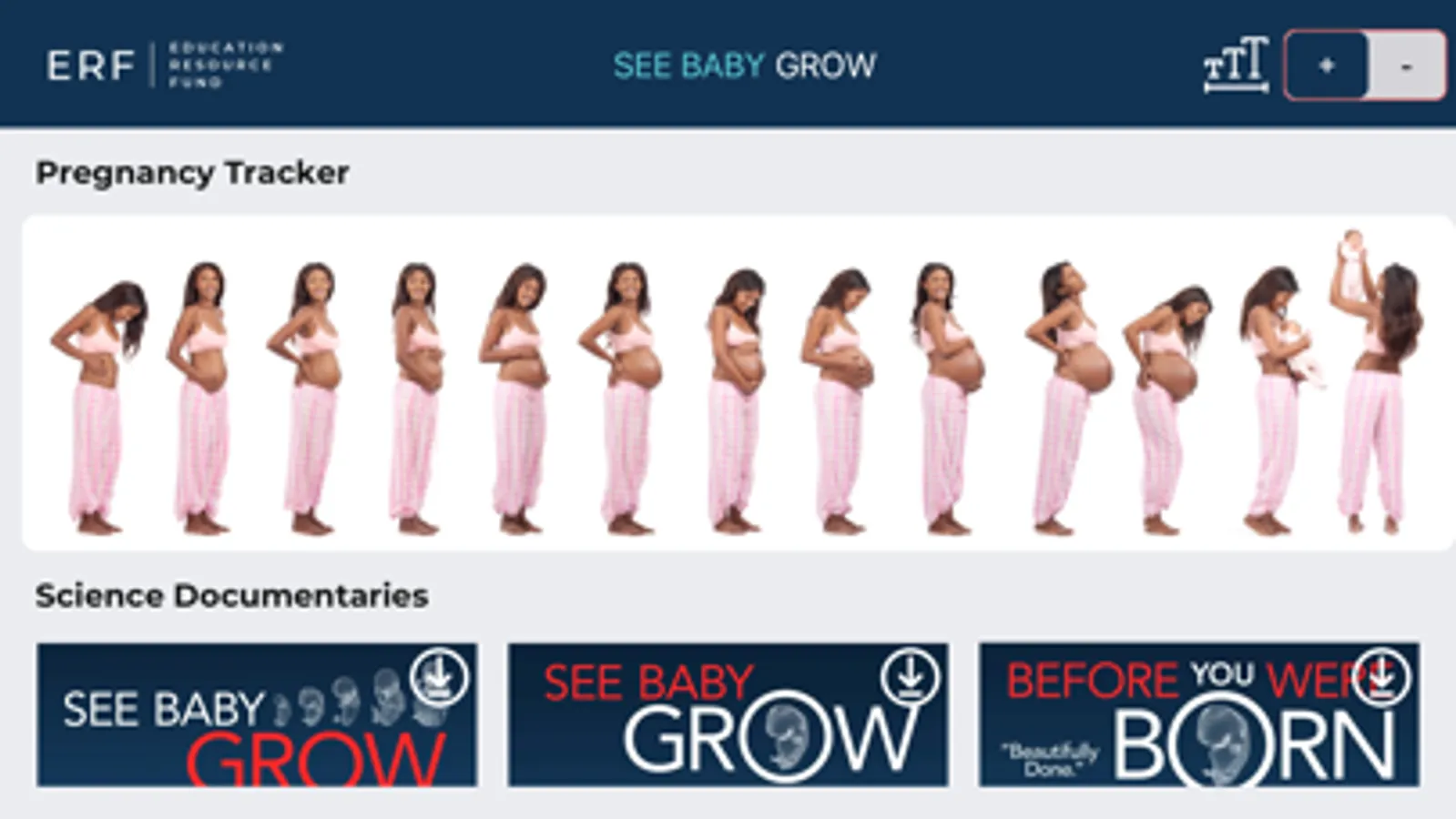 The See Baby Grow app is an academic resource which teaches the anatomy and physiology of prenatal development using rare medical imaging technologies to depict the human embryo and fetus in unprecedented detail, alive in the uterus, from fertilization through full-term delivery. It also features documentary films of varying lengths and degrees of complexity, some with subtitles translating the scripts in as many as 92 languages, with which can be used for instructional purposes.